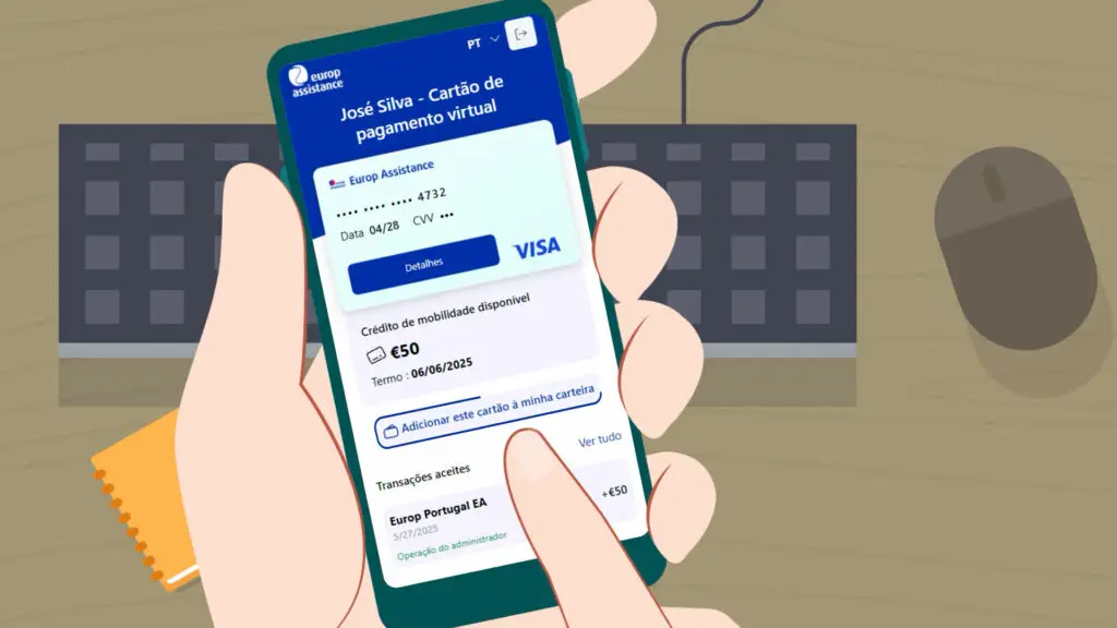 A Europ Assistance desenvolveu uma solução que garante, em alternativa ao táxi ou veículo de substituição, um plafond para mobilidade, disponível a partir de um cartão de crédito virtual e que o cliente pode gerir de acordo com as suas necessidades.